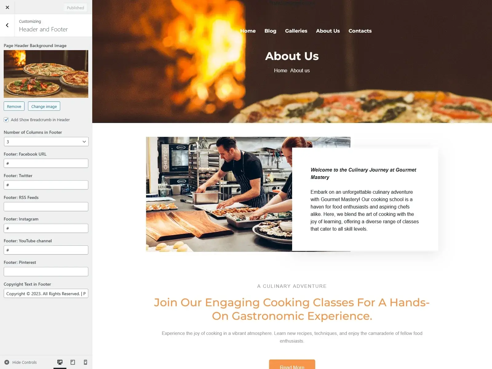 Our tish cooking school theme is built with a modern aesthetic that mirrors the sophistication of the culinary arts. It features a clean, intuitive design that ensures a seamless user experience for your visitors. From the moment they land on your homepage, they'll be captivated by the visually appealing layout, elegant typography, and a color palette that evokes the warmth of a professional kitchen. This theme is more than just a template; it's a digital canvas designed to reflect the excellence of your cooking school.
